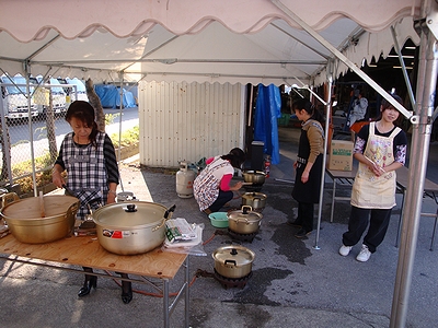 こちらでは女性スタッフたちが、大量の特製カレーの仕込中。