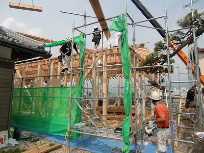 今日は平屋の離れの上棟でした。雨に関しては心配する必要はないのですが・・・・